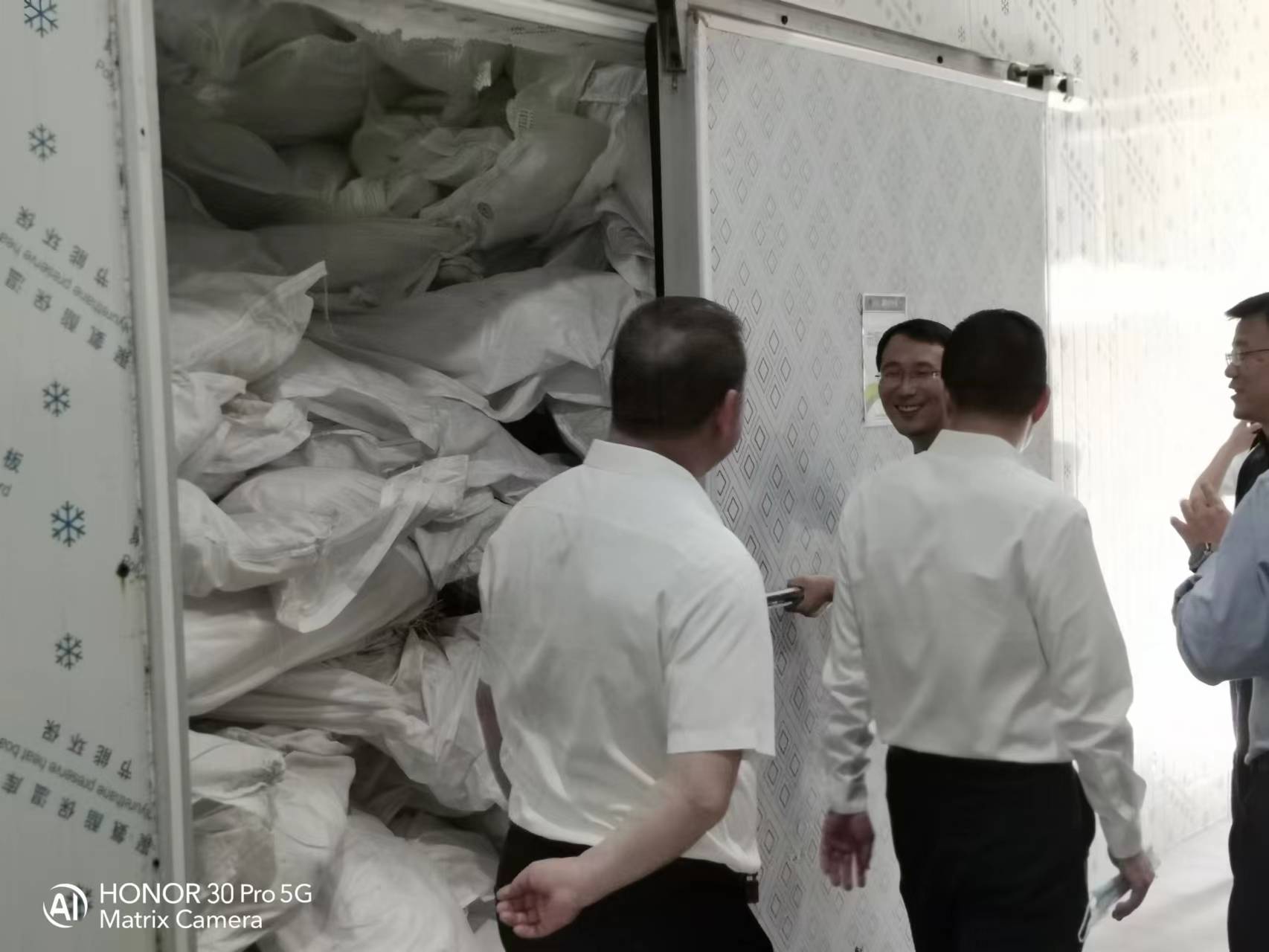 公司董事長兼總經(jīng)理張育賢帶領(lǐng)張建能董事長一行參觀凍庫.