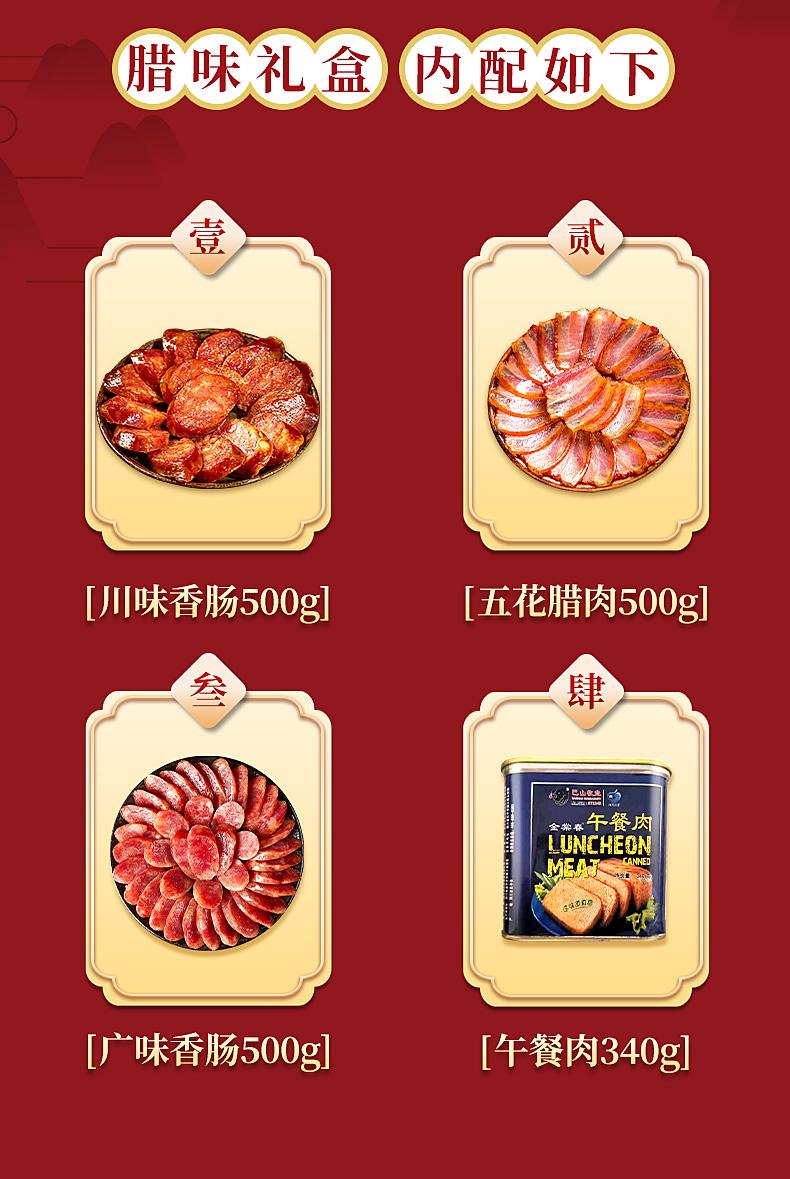 巴山黑豬臘肉川味香腸廣味香腸午餐肉禮盒套裝
